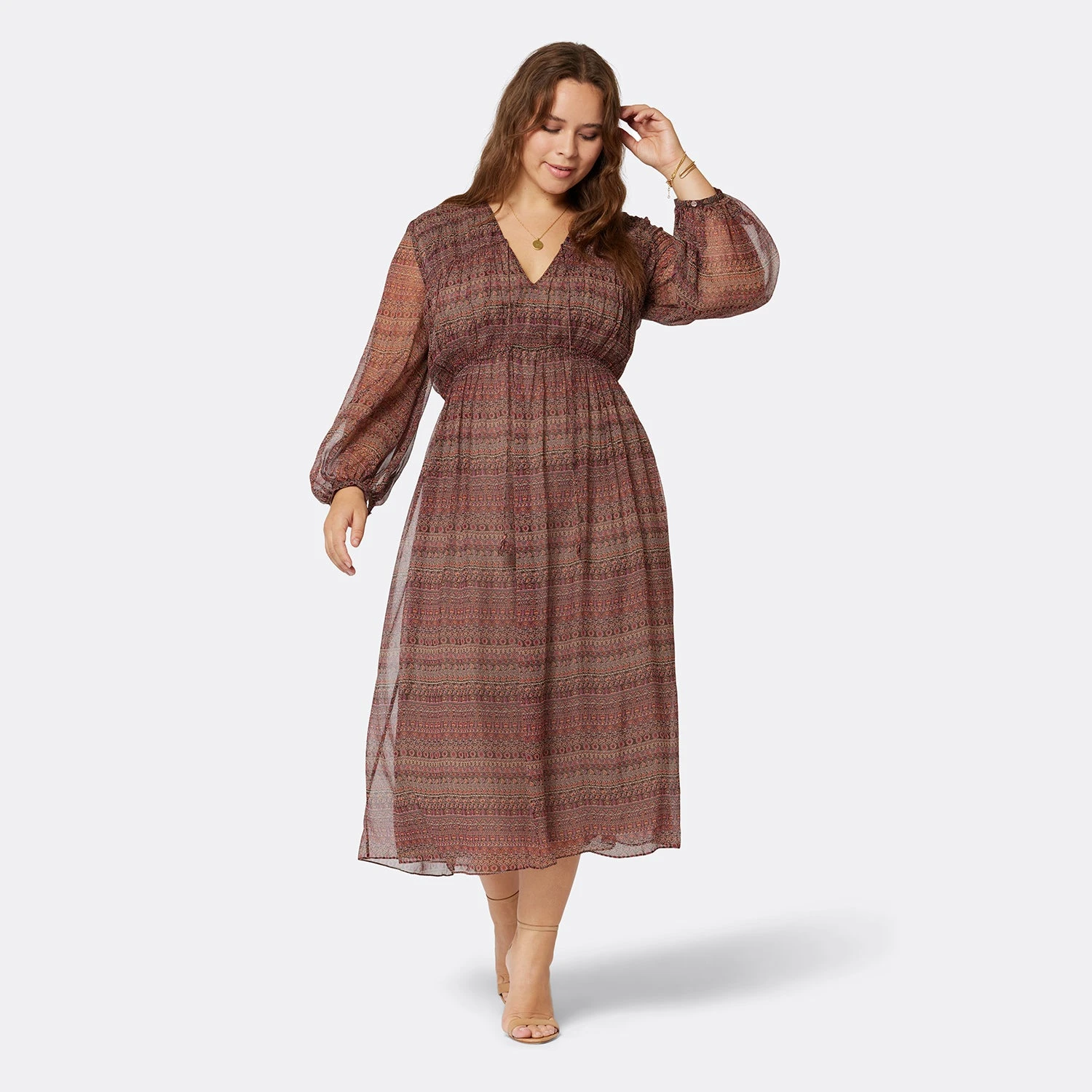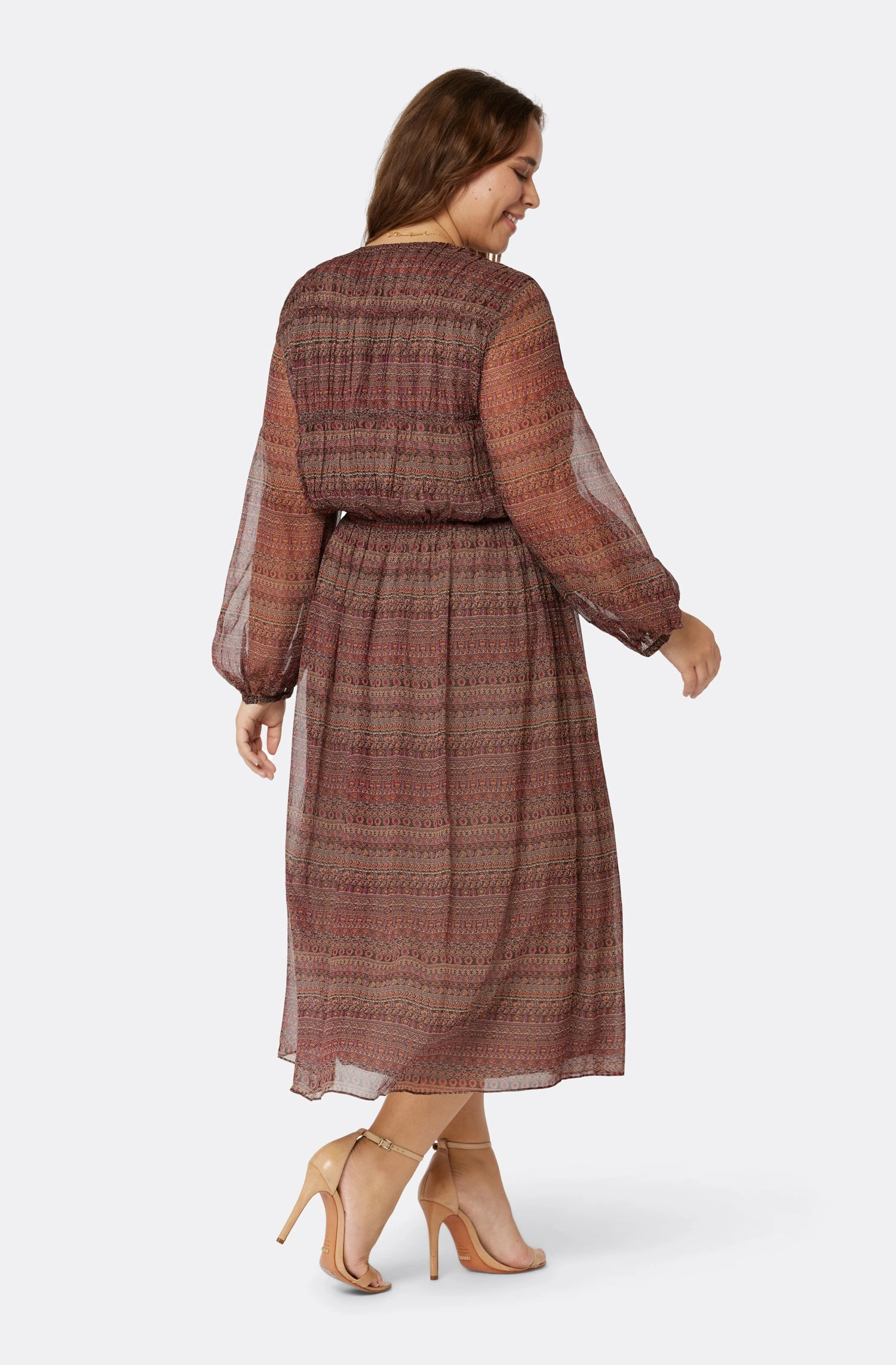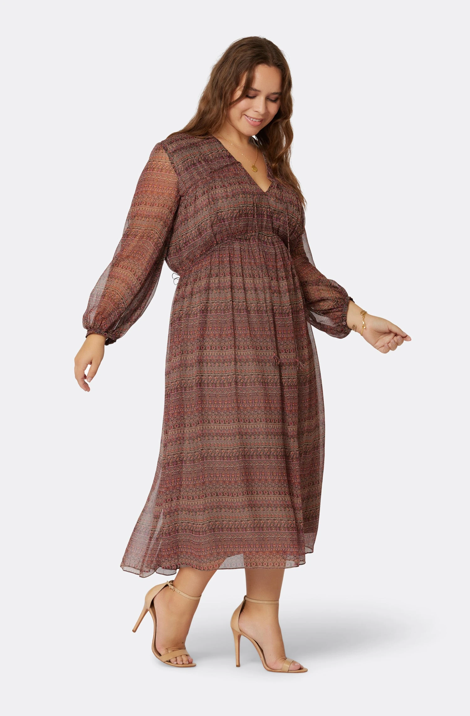 Silk georgette, drape, and a vintage-inspired pattern, The Alquina is your new go-to Boho dress of the season. Voluminous sleeves, flowing silhouette, and a cascading full skirt, this silk dress has endless layering possibilities.