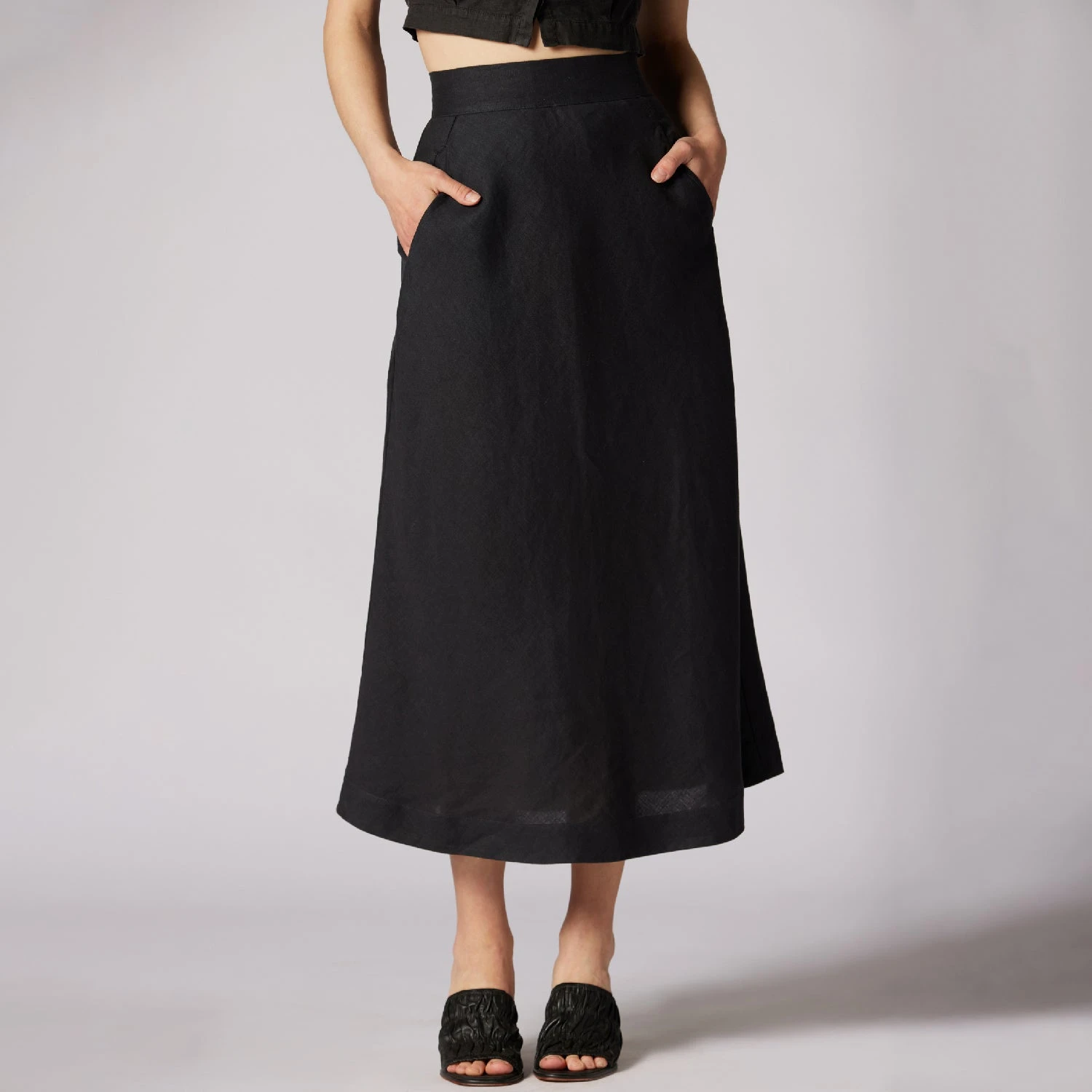 SKU: AM9PZ 8024571674850 Category: New Arrivals Tags: Age_group:adult, Bottoms, Category:Bottoms, Category:Skirts, Clothing, Color:caviar black, Custom_label_2:Sale, Custom_label_3:High Priority, Gender:female, Generic_color:black, Linen, Not Clearance, Sale, Sale bottoms, Sets, Skirt, Spring