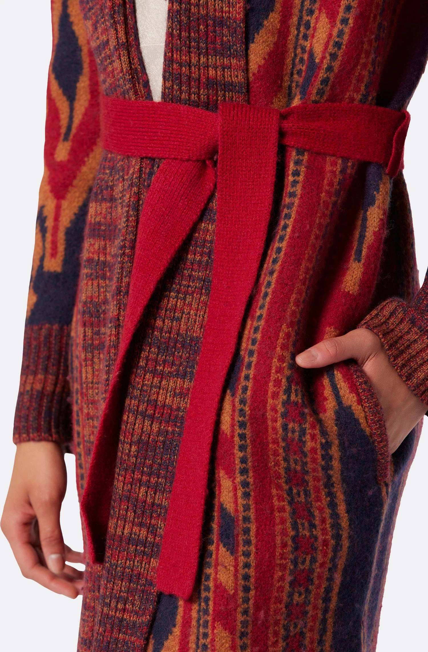 Side pockets, tie belt, and a great pattern, The Atya can take any basic outfit to the next -stylish- level. This wool design can be a great addition to your cozy fall wardrobe and feels soft to the skin.