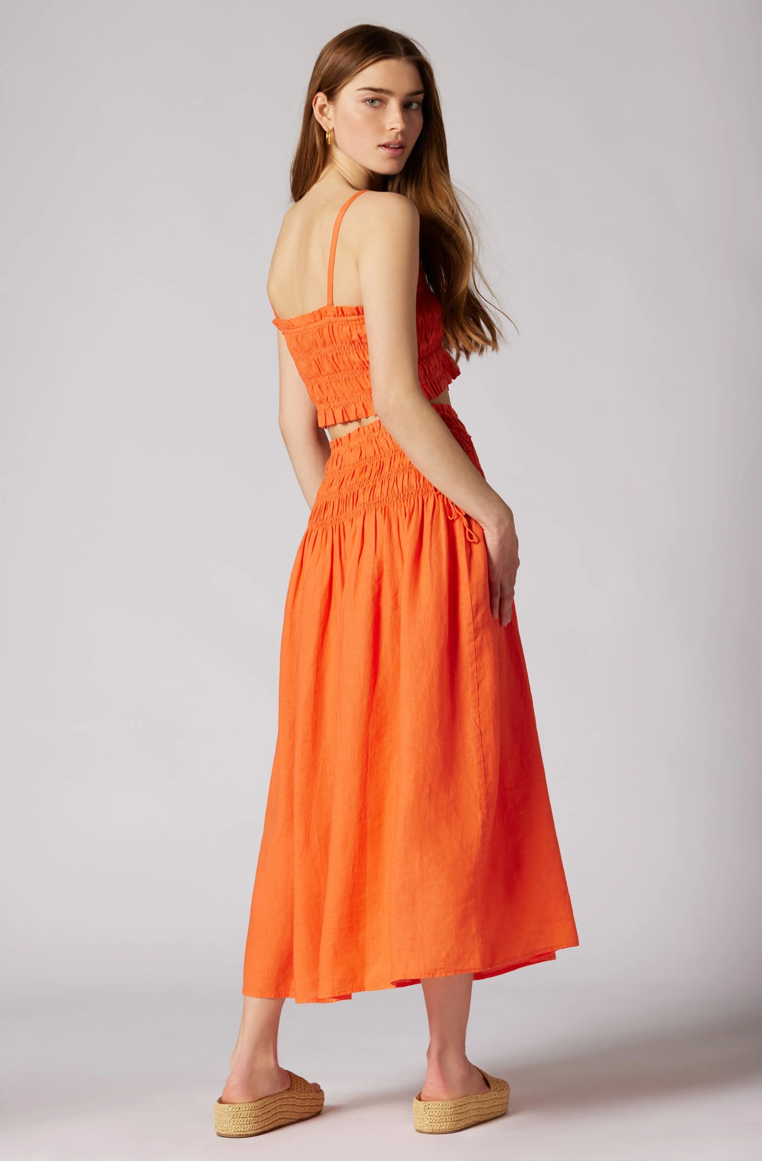 This is your summer starter linen crop top. The Brooklyn represents carefree summer style with its easy fit and smocking details, wear it and have the time of your life.