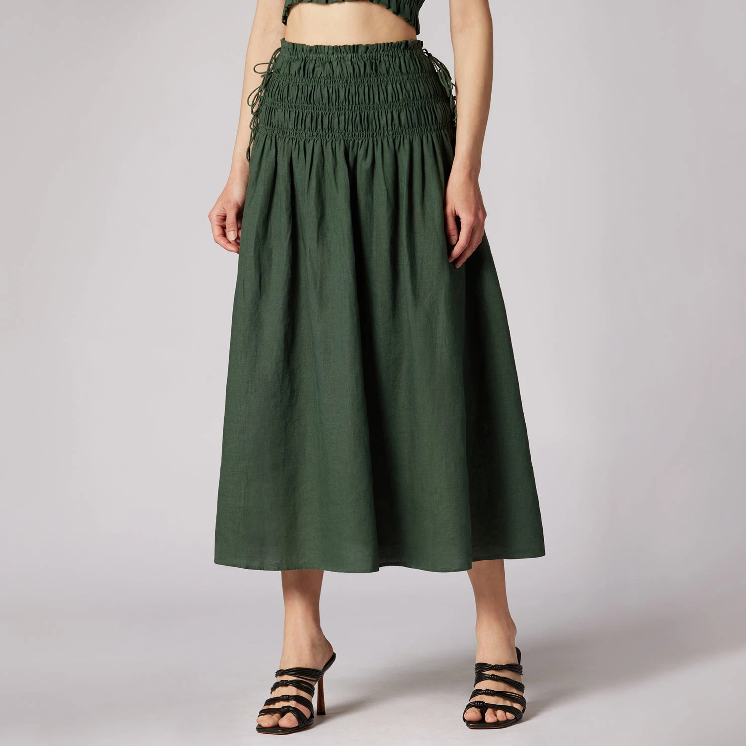 SKU: AM9PZ 8027703541986 Categories: Bottoms, New Arrivals Tags: Age_group:adult, Bottoms, Category:Bottoms, Clothing, Color:Jungle Green, Custom_label_2:Sale, Gender:female, Generic_color:Green, Linen, Not Clearance, Product:Clover Linen Skirt, Sale, Sale bottoms, Sets, Skirt, Summer