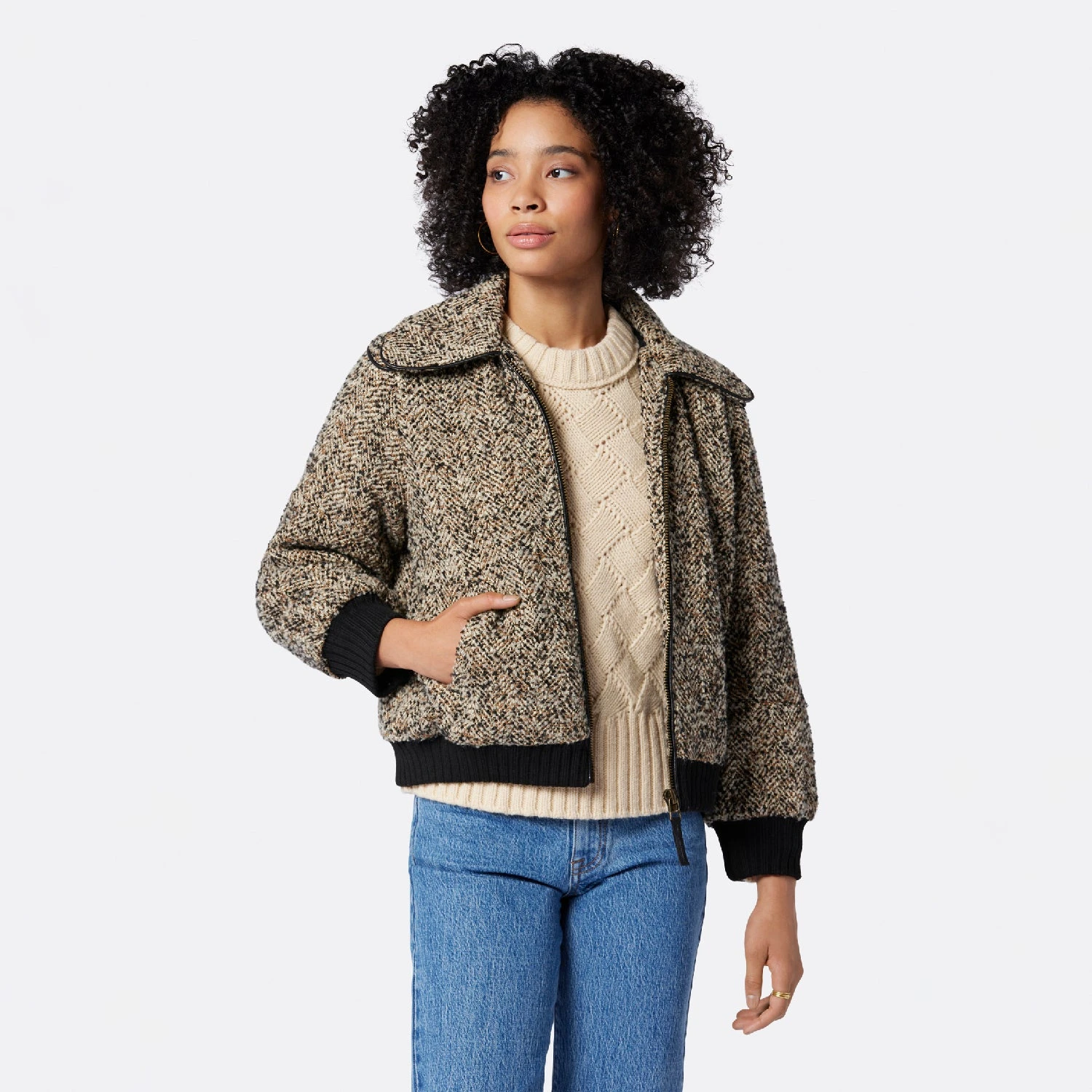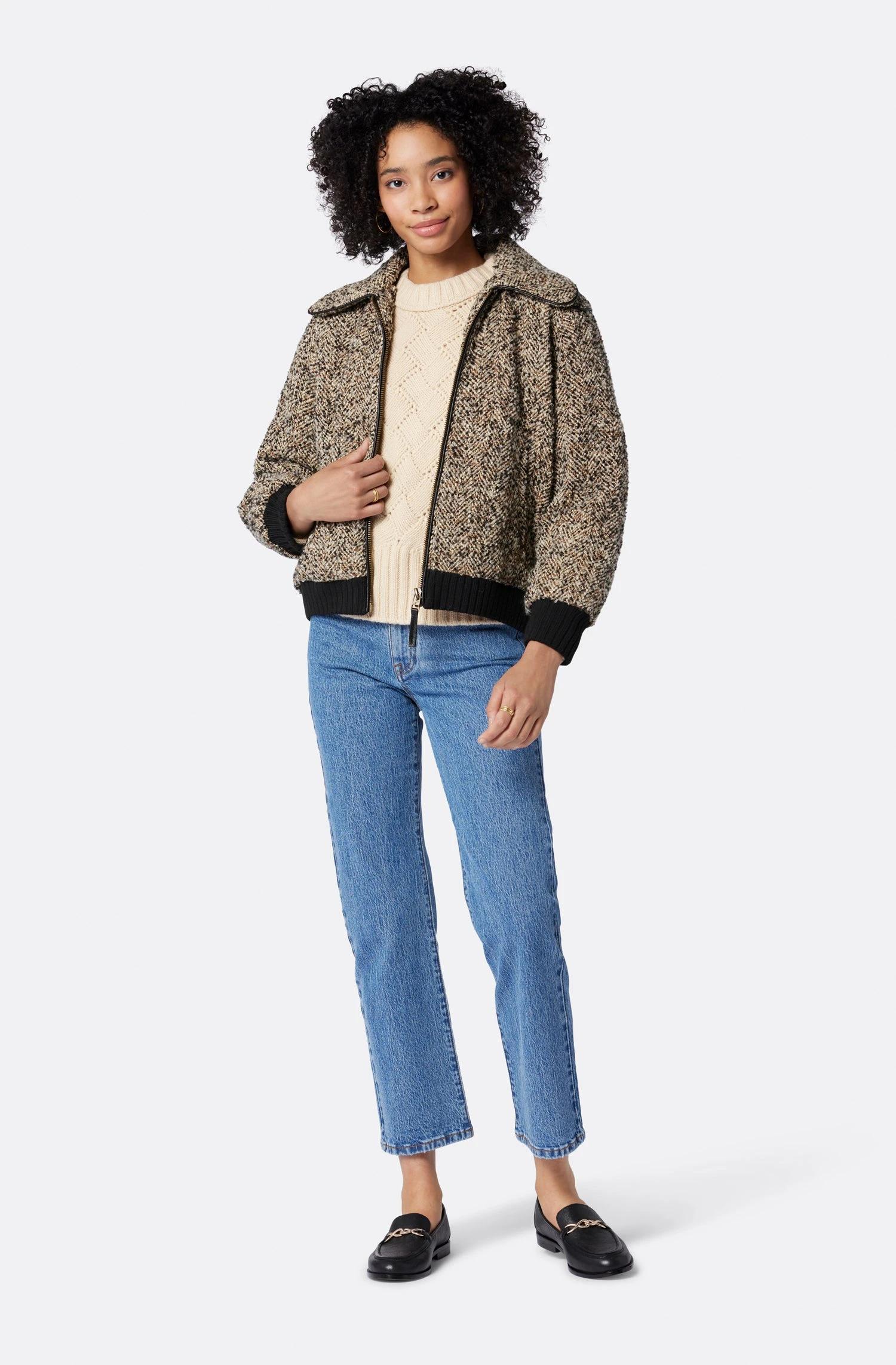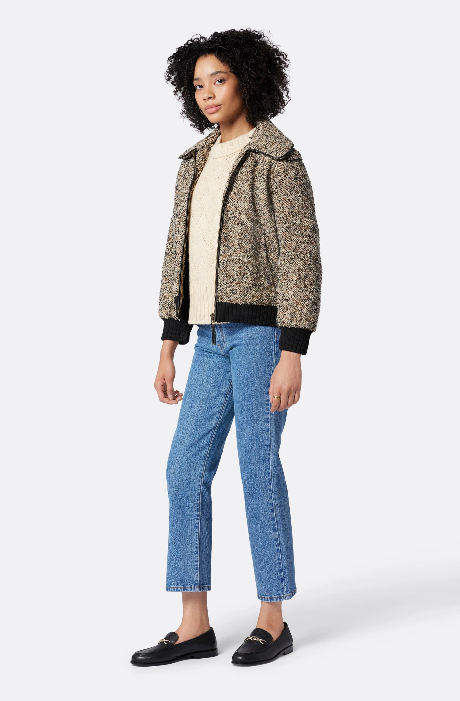 You like that fall layered look? This is your finishing piece. The Reille can easily become your go-to fall favorite thanks to its modern design and effortless appeal. Crafted in tweed with leather piping, make this your new fall wardrobe addition.