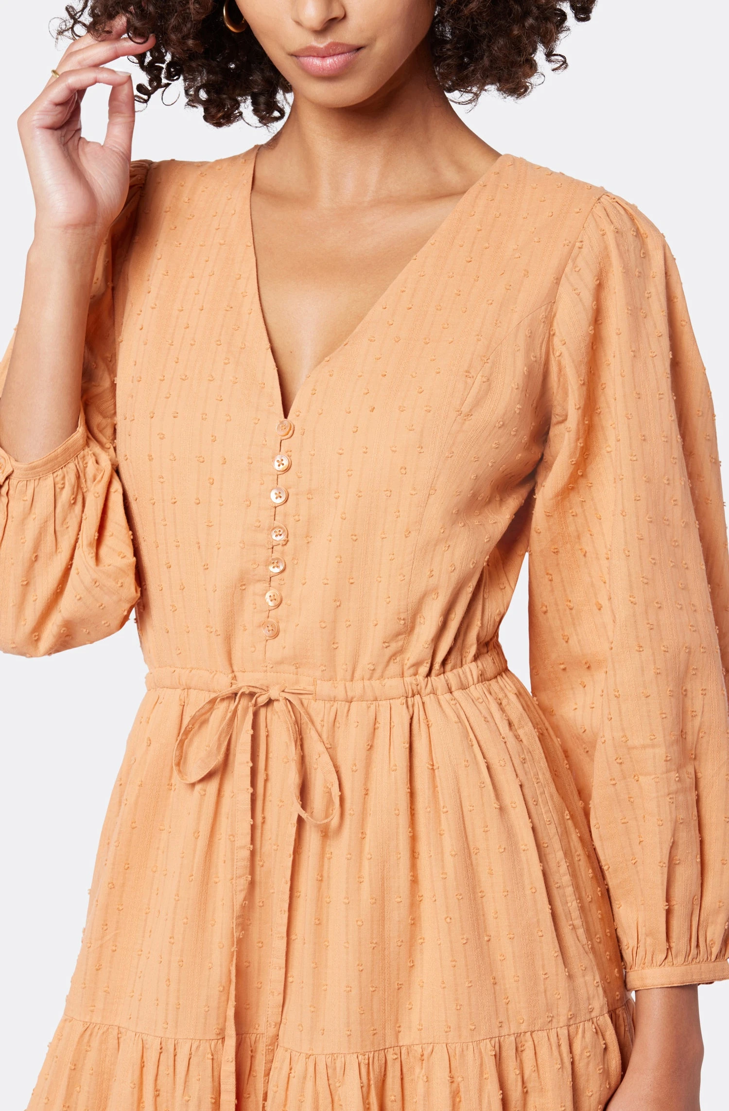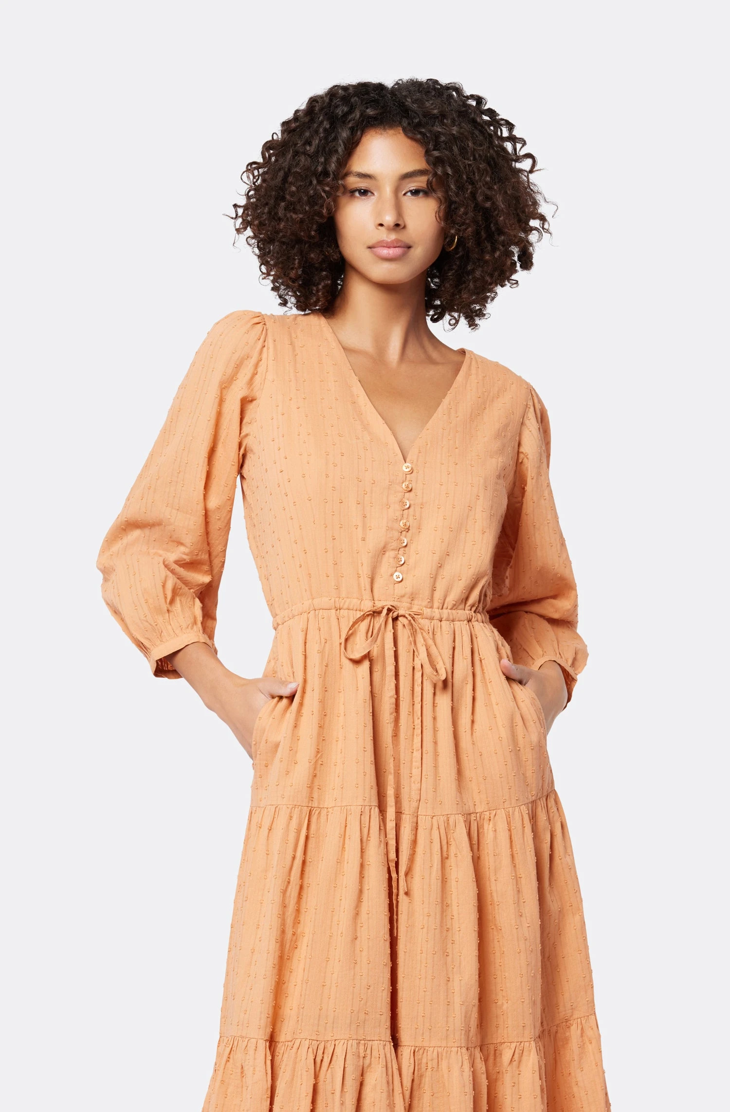 Everyone needs at least one tiered dress in their wardrobe, make it The Tobey. This cotton jacquard design with lace hem flows seamlessly with a drawstring waist for a flattering fit along with slightly-voluminous sleeves and a V-neckline.