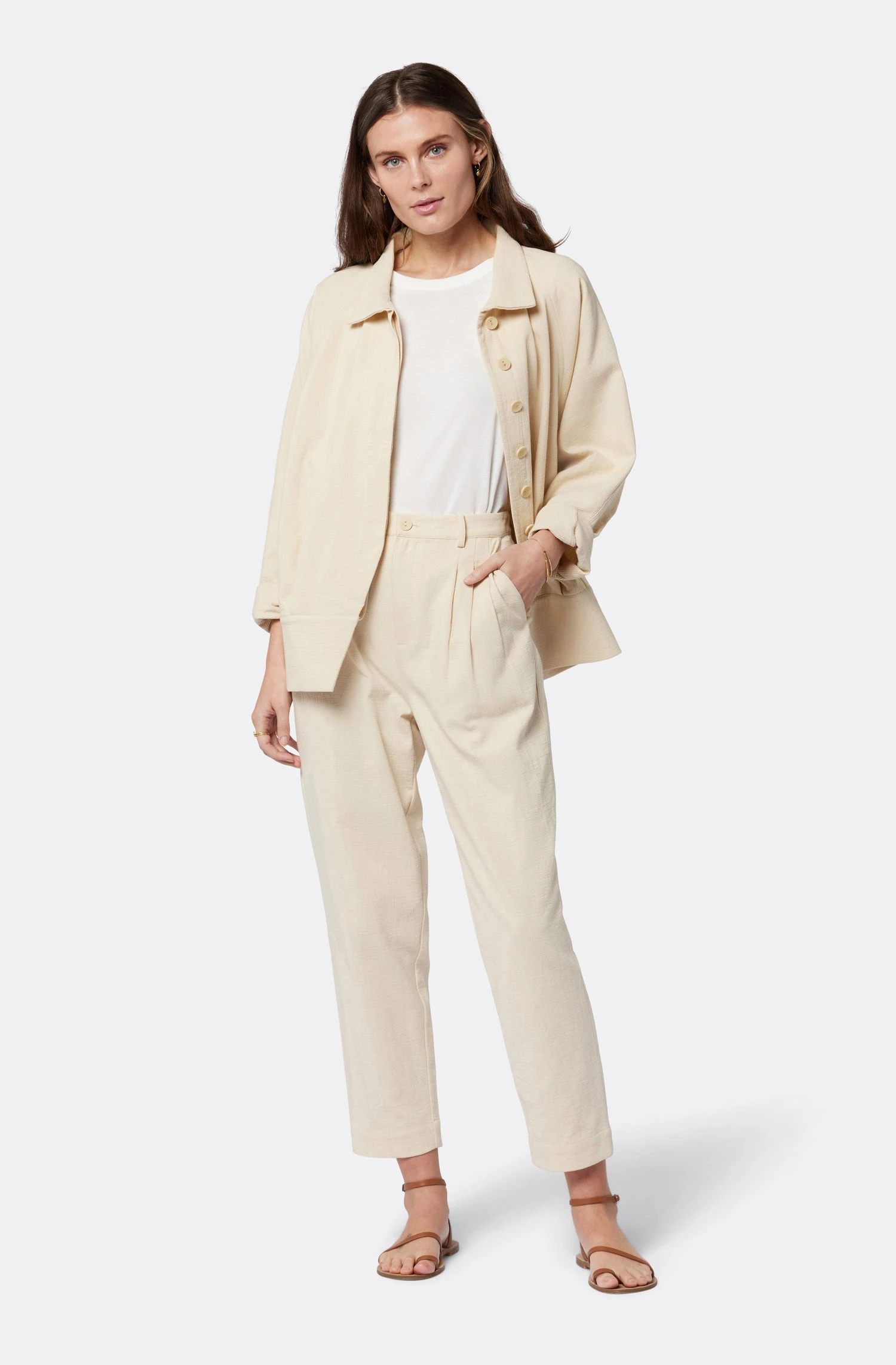 The Yves can be worn on its own or as an added layer on those slightly-chilly spring days. This textured cotton design has standout features like the high collar and statement dolman sleeves while remaining comfortable and effortlessly stylish.